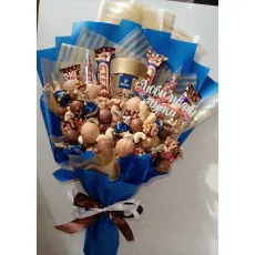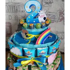 Яркий, интересный,вкусный букет порадует и мальчика и девочку.Состав,цвет упаковки можно менять по пожеланию.