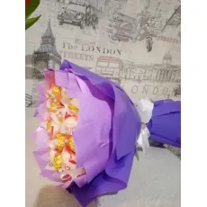 Букет из конфет с пером павлина (цвет сиреневый с Тиффани)