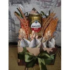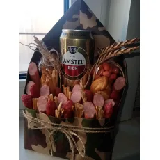 Конверт с любимыми закусками и пенным напитком. Состав оговаривается индивидуально. Колбасы, сыры, можно орехи, рыбу...