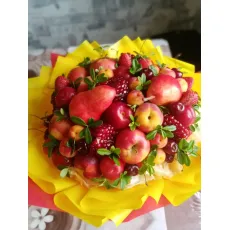 Красивый и яркий букет,вкусный и полезный .Лёгкий букет подойдёт ребенку ,не будет тяжело держать букет на ленейке....