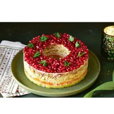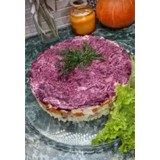 Селёдка, лук, картофель, морковь, свёкла, майонез. Зелень. Цена указана за 100гр. Предзаказ за 4 часа